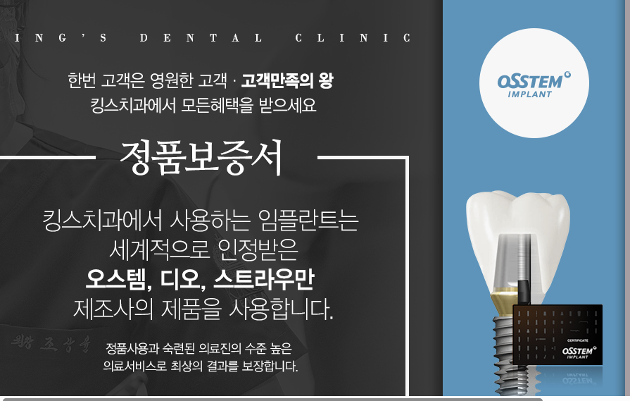 저는 10년넘게 킹스치과를 실뢰하고 원장님도 친절하시고 안내직원들도 친절하셔서 저는 믿음을 가지고 많은 친구들한테 또는 가족 특히 우리 어머님등 인플란트를 소개 하고 다들 좋으시다...